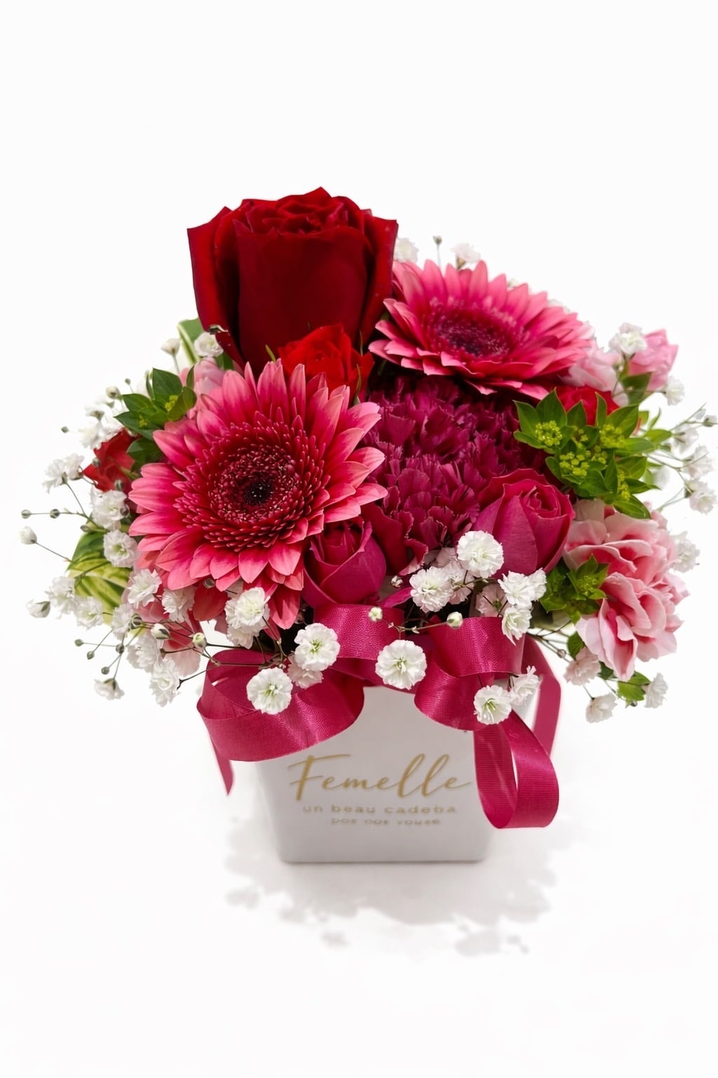 BOXアレンジメントフラワー レッドピンク