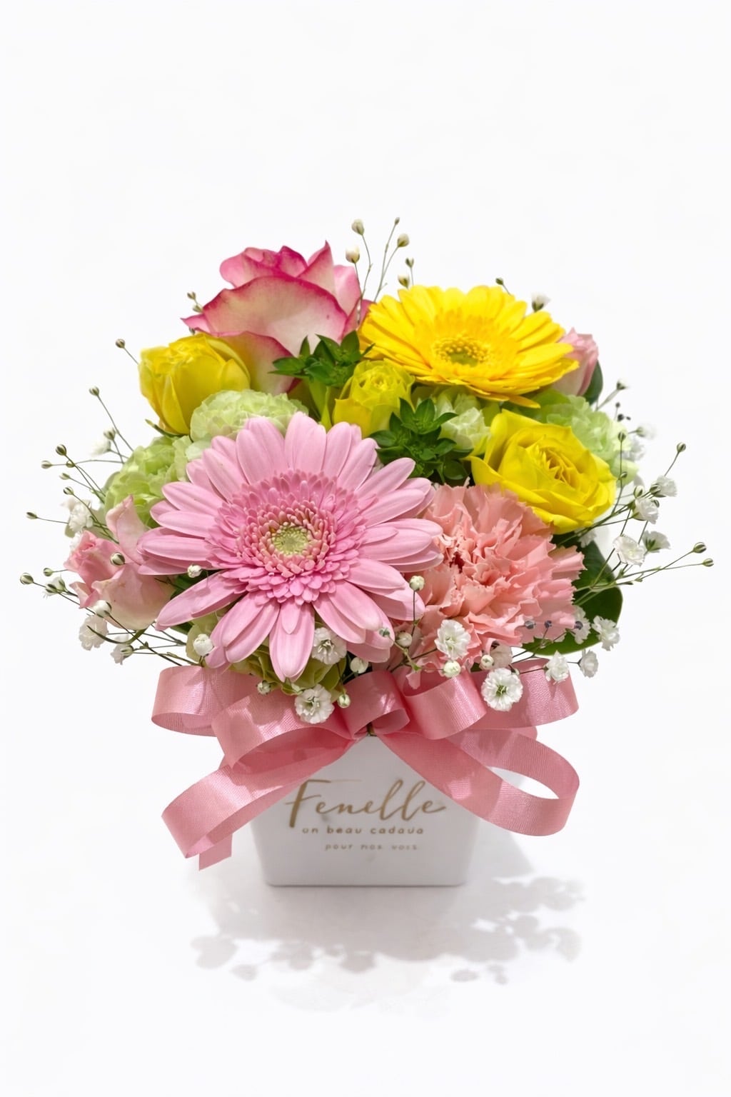 母の日 BOXアレンジメントフラワー ピンクイエロー