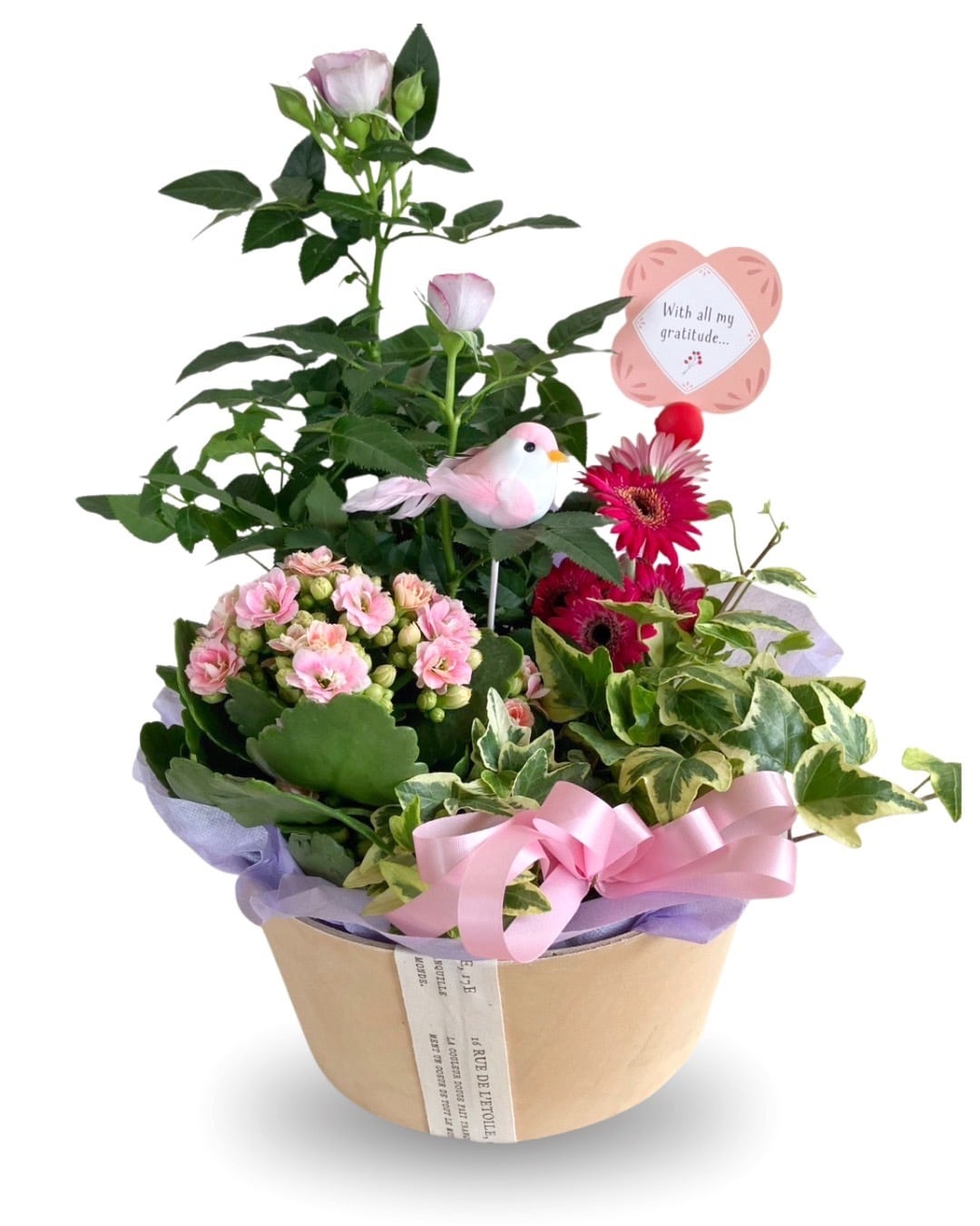 ブリキポット ミニバラ3.5号 ガーベラ3.5号 カランコエ2.5号