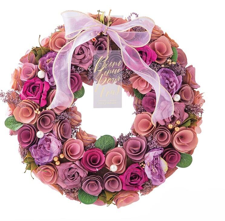 リースは丸く円を描くように作られており、『幸せがずっと続きますように』