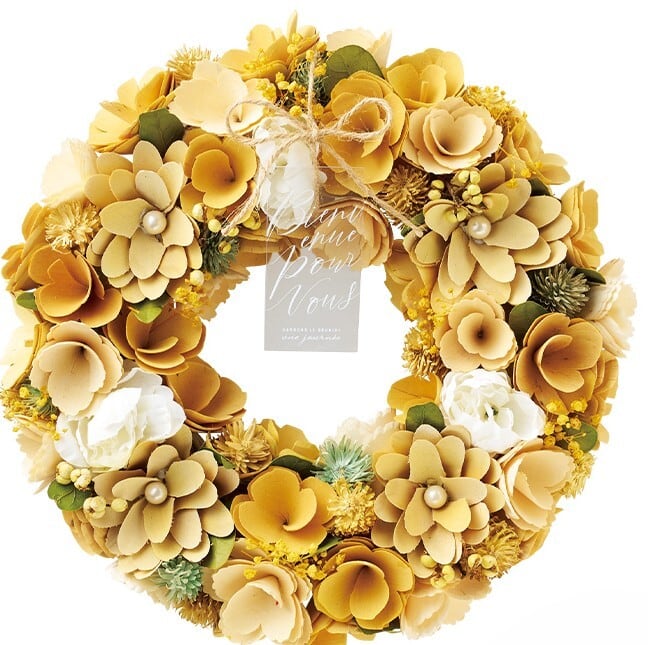 リースは丸く円を描くように作られており、『幸せがずっと続きますように』