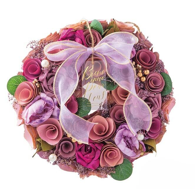 リースは丸く円を描くように作られており、『幸せがずっと続きますように』