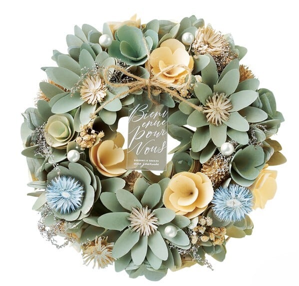 リースは丸く円を描くように作られており、『幸せがずっと続きますように』